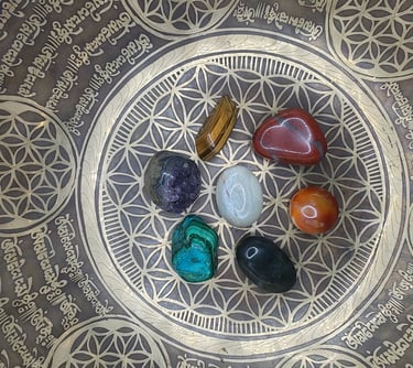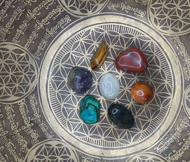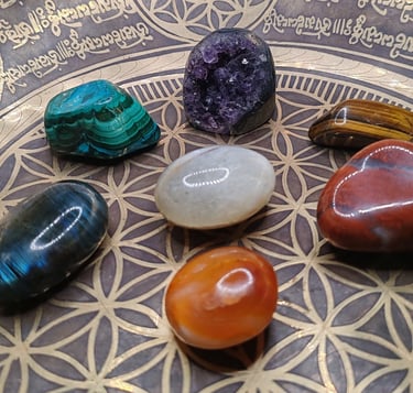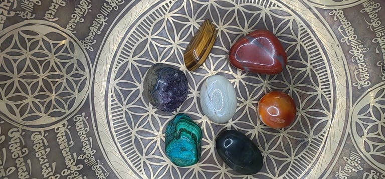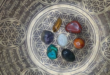 Placement des Cristaux : Disposez les cristaux que vous souhaitez recharger sur le motif de la Fleur de Vie. Cela peut être sous la forme d'une représentation imprimée, d'un objet sculpté ou d'un diagramme tracé.