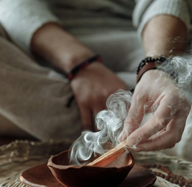 Rituels de Purification : La fumigation est souvent utilisée dans des rituels de purification, que ce soit pour nettoyer un espace physique, des objets sacrés, ou même l'aura d'une personne. La fumée est considérée comme un moyen de libérer les énergies stagnantes.