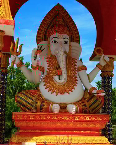 Rôle dans la Religion et la Spiritualité : Ganesh est vénéré comme le dieu de la sagesse et de la réussite. Il est également considéré comme le removeur d'obstacles, connu sous le nom de "Vighnaharta". Les fidèles invoquent Ganesh au début de leurs entreprises et cérémonies pour s'assurer que celles-ci se déroulent sans heurts. Sa popularité transcende les frontières religieuses, et sa bienveillance est recherchée par des personnes de diverses traditions spirituelles.