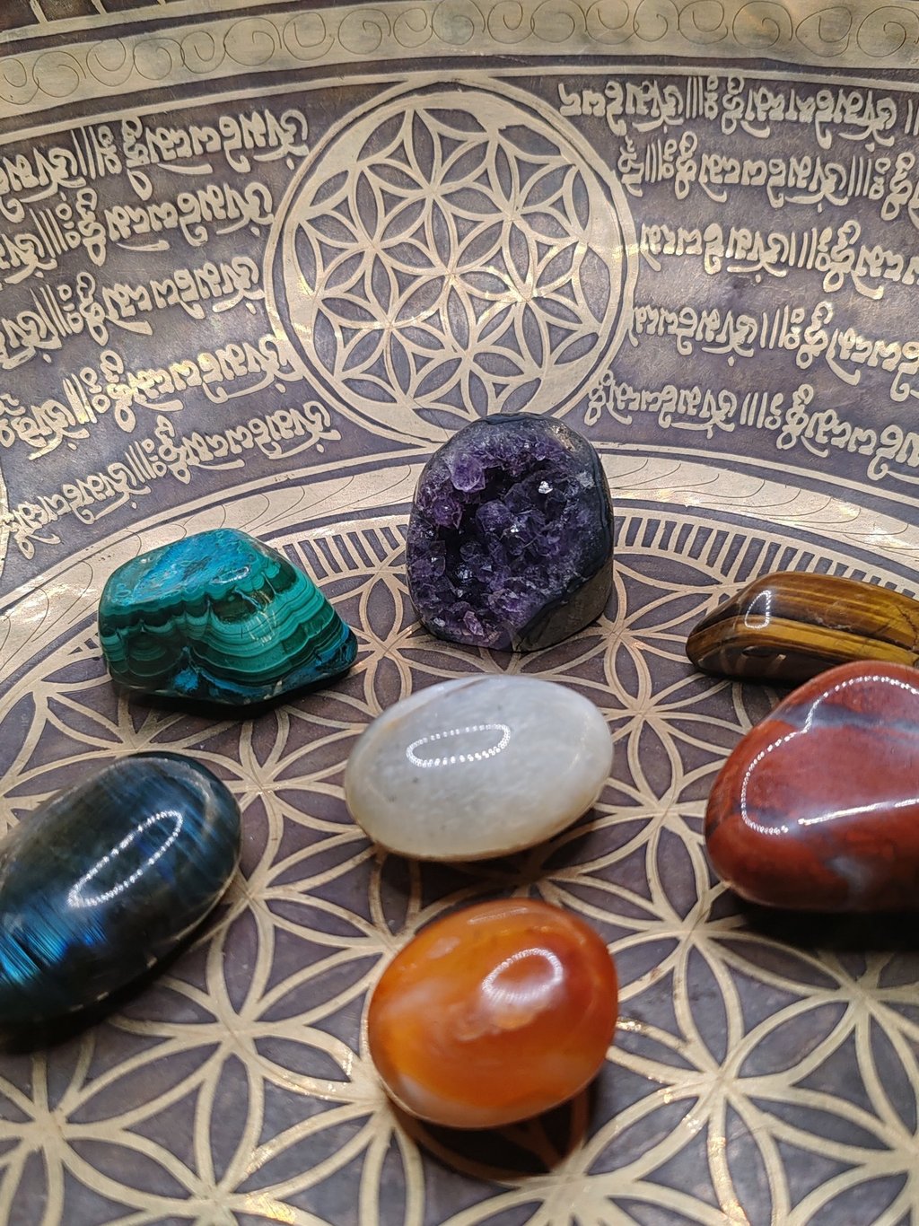 Visualisation : Fermez les yeux et visualisez l'énergie de la Fleur de Vie rayonnant vers les cristaux. Imaginez cette énergie pénétrant les cristaux, les purifiant et les rechargeant de vibrations positives.
